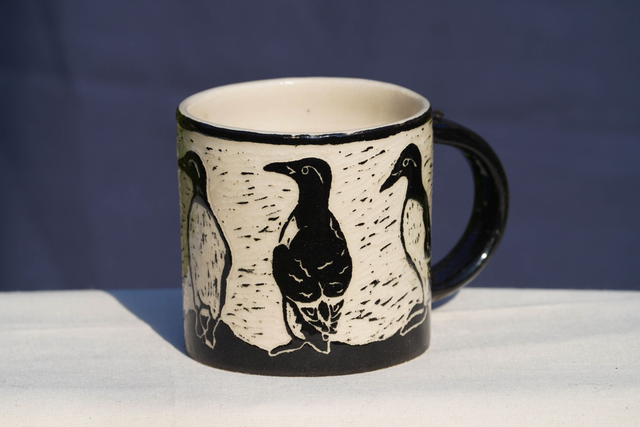 Hand-made sgraffito Common Guillemot mug (5 bird design) - bring some seabirds and joy to your hot drinks!
