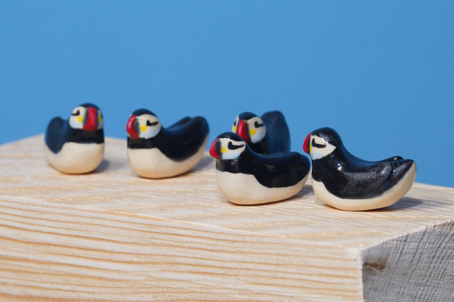 These tiny ceramic puffins are hand made and hand painted