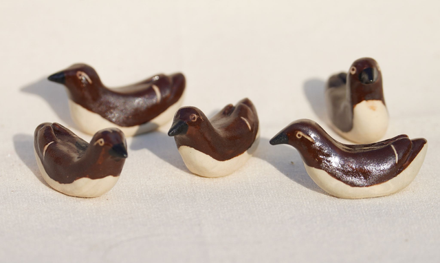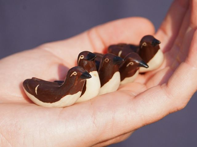 These tiny ceramic guillemots are hand made and hand painted