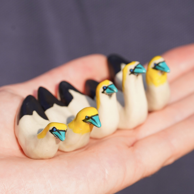These tiny ceramic gannets are hand made and hand painted