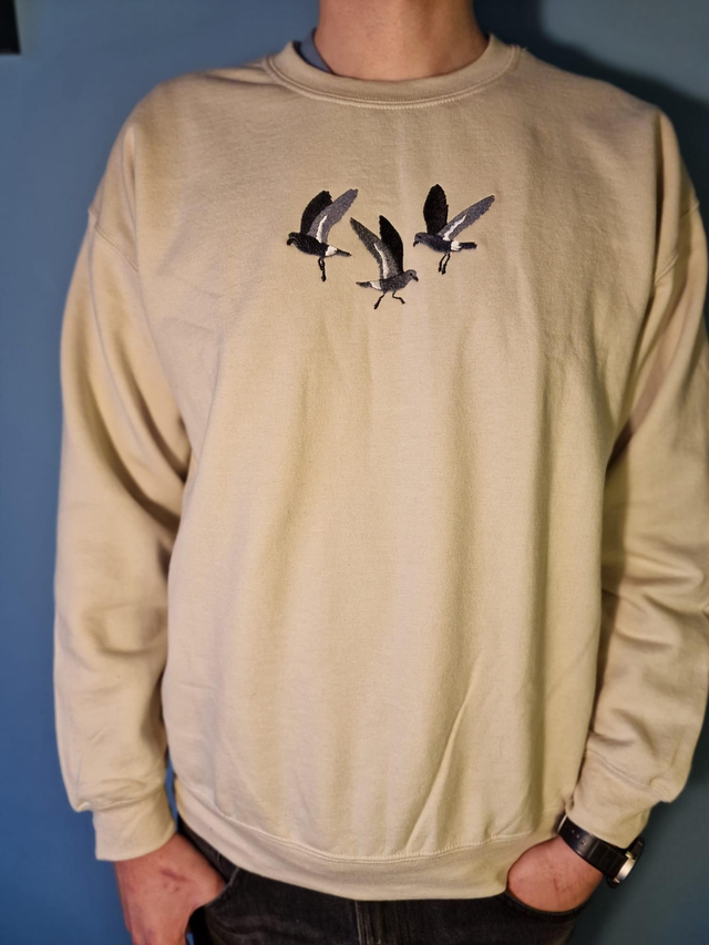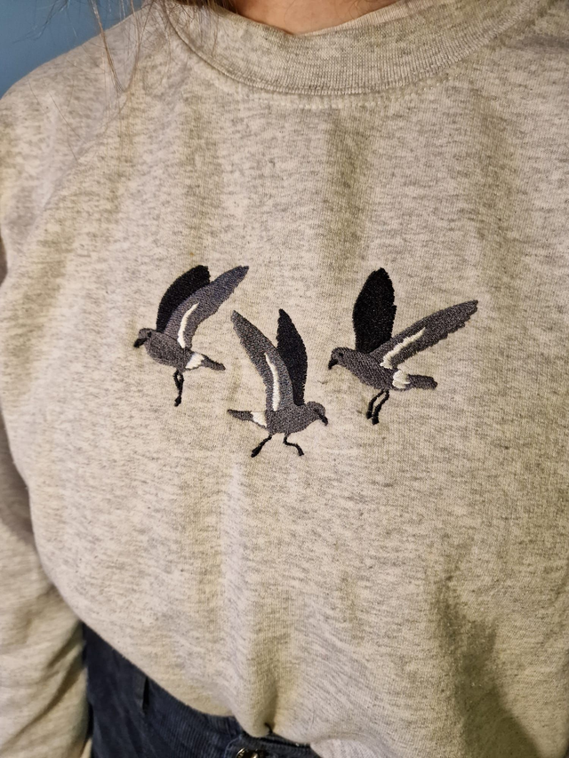 Embroidered storm petrel sweater